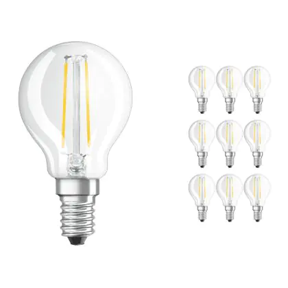 Descrizione Confezione Multipack 10x Ledvance CLASSIC LED E14 Pera Filamento Chiara 2.5W 250lm - 827 Bianco Molto Caldo | Sostitutiva 25W