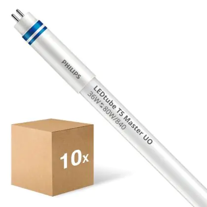 Il Confezione Multipack 10x Philips Tubo LED T5 MASTER (HF) Ultra Output 36W 5600lm - 840 Bianco Freddo | 145cm - Dimmerabile - Sostitutiva 80W è un tubo LED perfetto per sostituire gli standard tubi fluorescenti di 80 W. Con questo tubo LED di Philips ti assicuri una lunga durata e 5 anni di garanzia.