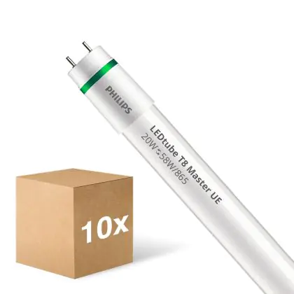 Confezione Multipack 10x Philips Tubo LED T8 MASTER (EM/Mains) Ultra Efficiency 20W 3700lm - 865 Luce Del Giorno | 150cm - Sostitutiva 58W