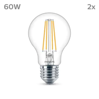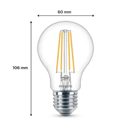 La Confezione Multipack 2x Philips Bulbo LED E27 Pera Filamento Chiara 7W 850lm - 840 Bianco Freddo è la perfetta sostituzione per la tua lampada convenzionale W con attacco E27 grazie alla sua tecnologia LED. Passare a LED ti offrirà tanti vantaggi!