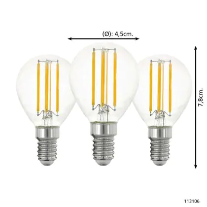 Descrizione Confezione Multipack 3x Eglo LED Sferica E14 Filamento Chiara 21W 806lm - 827 Bianco Molto Caldo | Sostitutiva 60W
