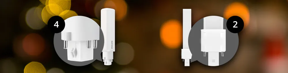 Le lampadine a basso consumo (LED) hanno attacchi con 2 pin o 4 pin. Scegli sempre una lampadina a risparmio energetico con lo stesso attacco di quella vecchia, altrimenti non si adatterà all'apparecchio e non funzionerà. Le lampadine a risparmio energetico con una base a 2 pin funzionano con un reattore convenzionale (EM) con incluso lo starter. Le lampadine a risparmio energetico con un attacco a 4 pin funzionano con un reattore elettronico (HF) senza starter.
