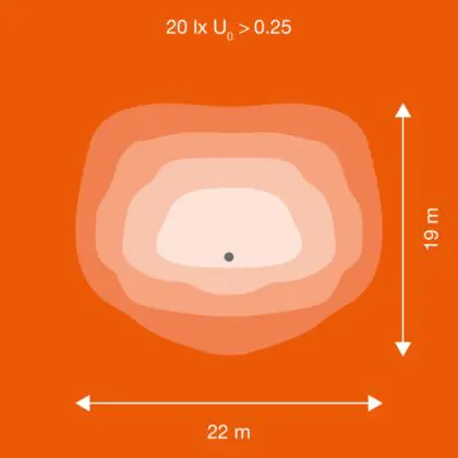 Questa lampada LED viene spesso usata per illuminare in modo ottimale aree piuttosto grandi. A questo scopo, serve un apparecchio che abbia alto rendimento luminoso in quanto maggiore è il rendimento luminoso, più grande è la superficie illuminata. Questo apparecchio emette una luce con potenza luminosa di 11500 lm e il rapporto lumen/watt di efficienza luminosa è di lm/W. Questo significa che l'apparecchio consuma poca energia per la quantità di luce che genera!