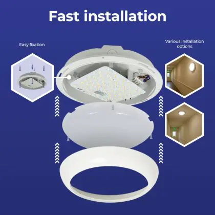 Prima di sostituire un vecchio apparecchio di illuminazione con uno nuovo è sempre consigliabile controllare le dimensioni. Installare questa plafoniera LED è molto facile: basta leggere attentamente le istruzioni e utilizzare il materiale di installazione fornito (viti, tasselli, ecc.). Se hai dubbi sull’installazione consulta un installatore certificato. Per questa lampada offriamo una garanzia di 5 anni