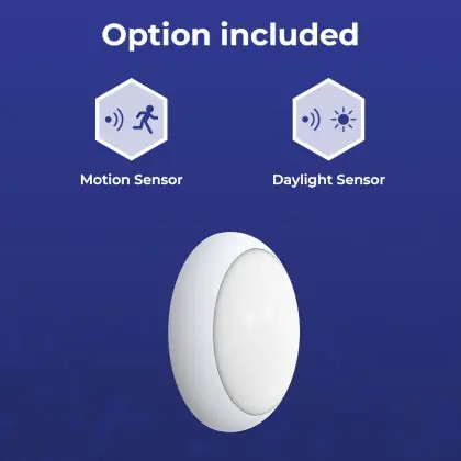 Descrizione Noxion Bulkhead LED Pro V2 Bianca 12/16/20W 2400lm - 830-840-865 CCT | 325mm - IP65 - Sensore di Movimento e Luce