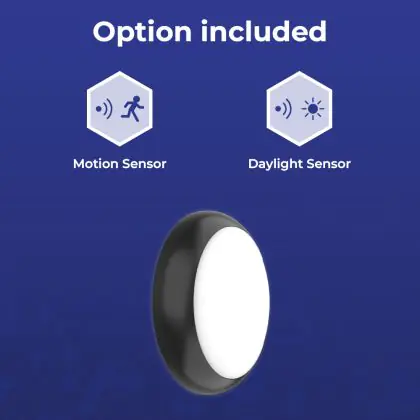 Noxion Bulkhead LED Pro V2 Bianca 12/16/20W 2400lm - 830-840-865 CCT | 325mm - IP65 - Sensore di Movimento e Luce + Il Anello Nero