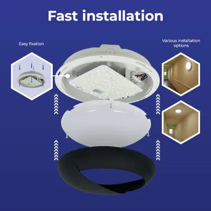 Prima di sostituire un vecchio apparecchio di illuminazione con uno nuovo è sempre consigliabile controllare le dimensioni. Installare questa plafoniera LED è molto facile: basta leggere attentamente le istruzioni e utilizzare il materiale di installazione fornito (viti, tasselli, ecc.). Se hai dubbi sull’installazione consulta un installatore certificato. Per questa lampada offriamo una garanzia di 6 anni