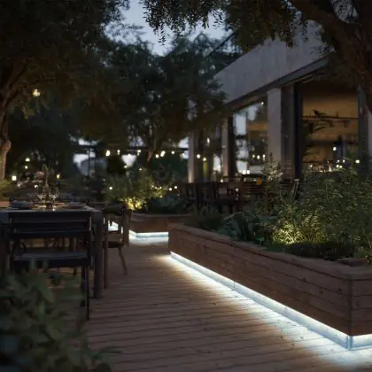 Questa fonte di luce può sempre essere utilizzata per l'illuminazione d'accento. Per usarla invece come illuminazione generale bisogna considerare l’emissione luminosa e l’apertura del fascio di luce. Questa striscia LED è lunga 5000 mm e ha una potenza luminosa di 820 Lumen. Dividendo il numero di Lumen per la lunghezza della striscia LED troverai la potenza luminosa per metro. Le strisce LED hanno generalmente un fascio di luce ad ampio angolo, che non fa eccezione per questo articolo: °. Clicca qui per scoprire quanti lumen servono in ogni stanza.