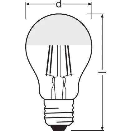 Descrizione Osram Classic LED E27 Pera Filamento Mirror Oro 6.5W 650lm - 827 Bianco Molto Caldo | Sostitutiva 50W
