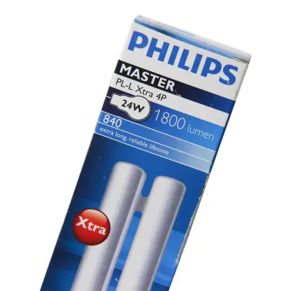 Le Philips PL-L 24W 865 4P (MASTER) sono efficienti lampade fluorescenti compatte a basso contenuto di mercurio. Sono molto efficienti e garantiscono performance ottimali di illuminazione per periodi di accensione brevi o lunghi. Tali lampade fluorescenti compatte sono dotate di attacco 2G11 e la base presenta 4 pin (perni). La potenza delle stesse é pari a 24W. Quando sostituisci le tue lampade fluorescenti compatte é fondamentale scegliere le nuove con il medesimo attacco, numero di pin (perni) e potenza di quelle che stai attualmente usando altrimenti non sarai in grado di installarle.