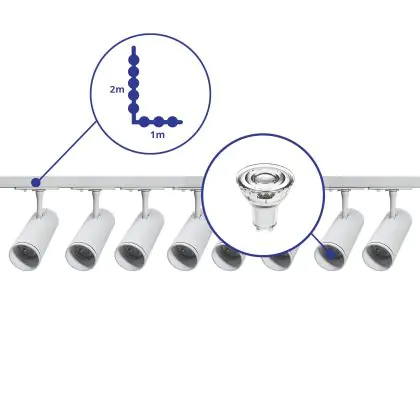 Set completo 1-Fase Rail L 1 x 2 Metro Bianca | incl. 8x Faretti + GU10 2700K 3W Dimmerabile + Tappo Di Chiusura, Connettore di Alimentazione e L -Connettore